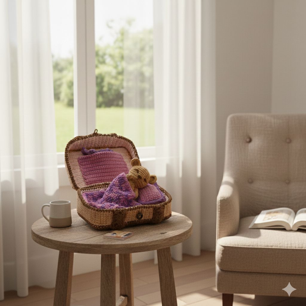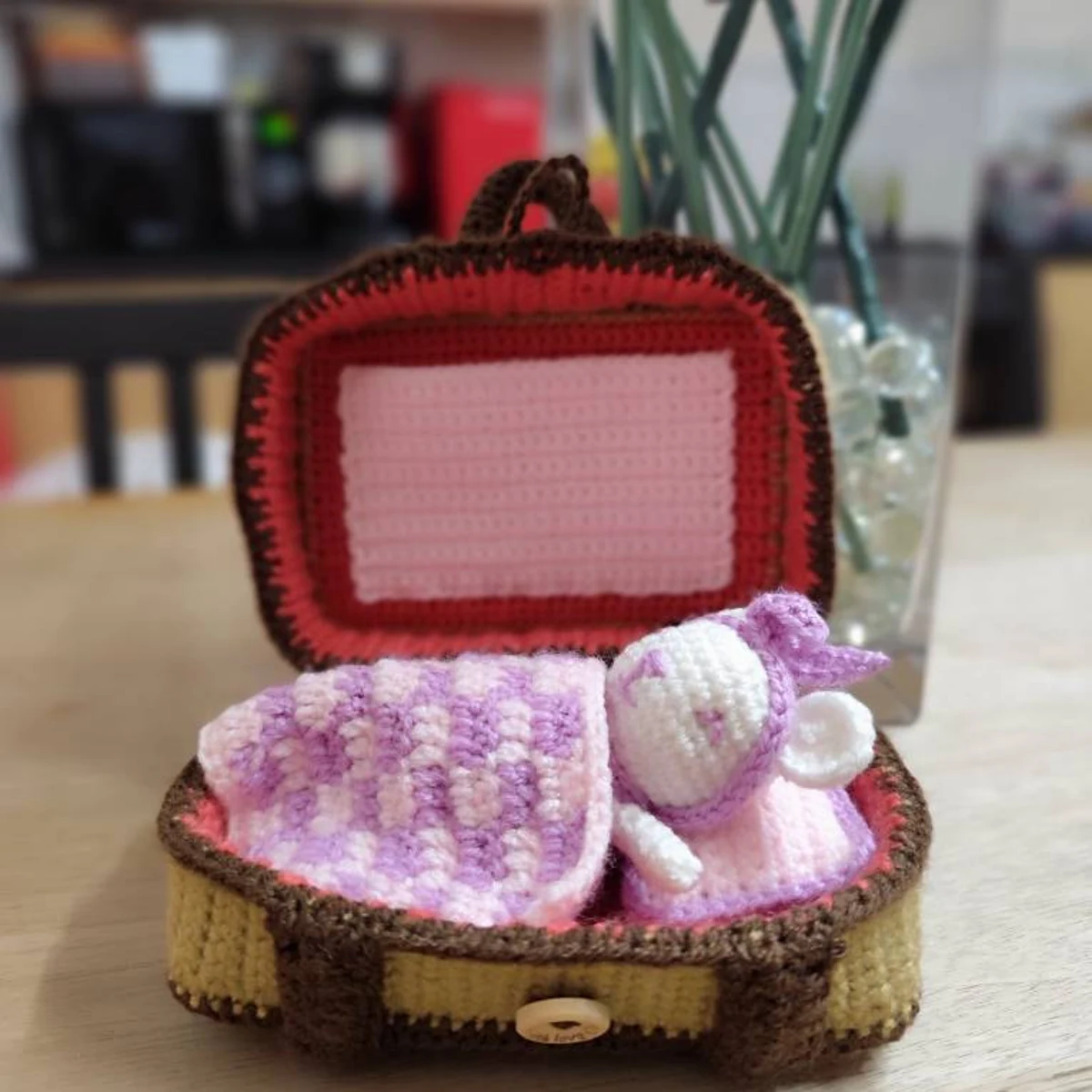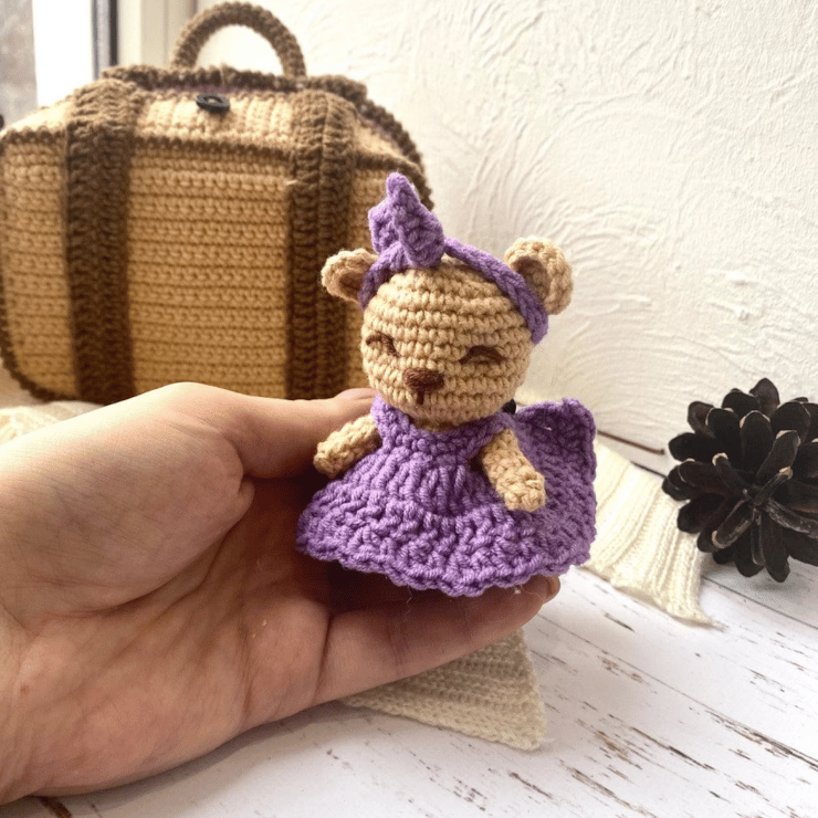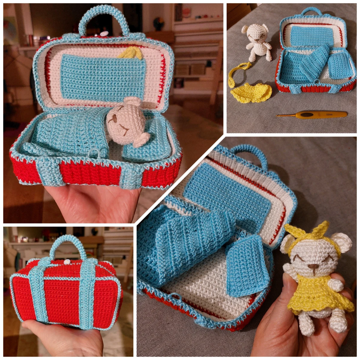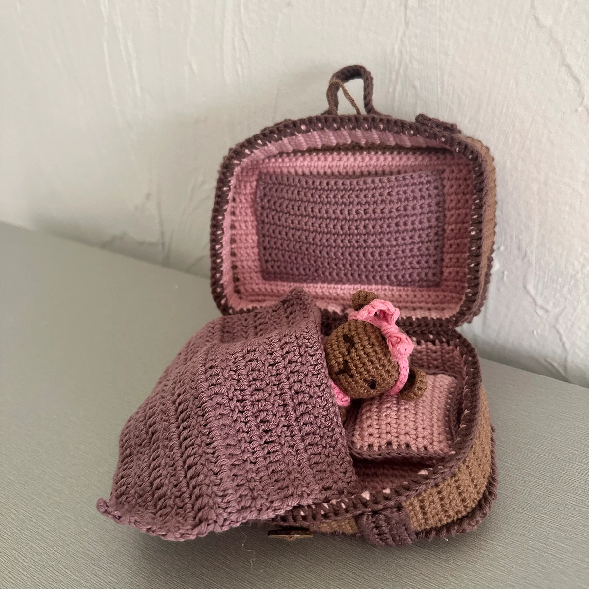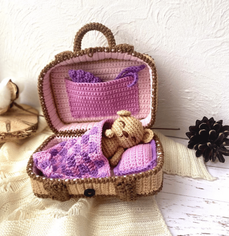 Crochet a tiny teddy bear that fits inside its own handmade suitcase 💼